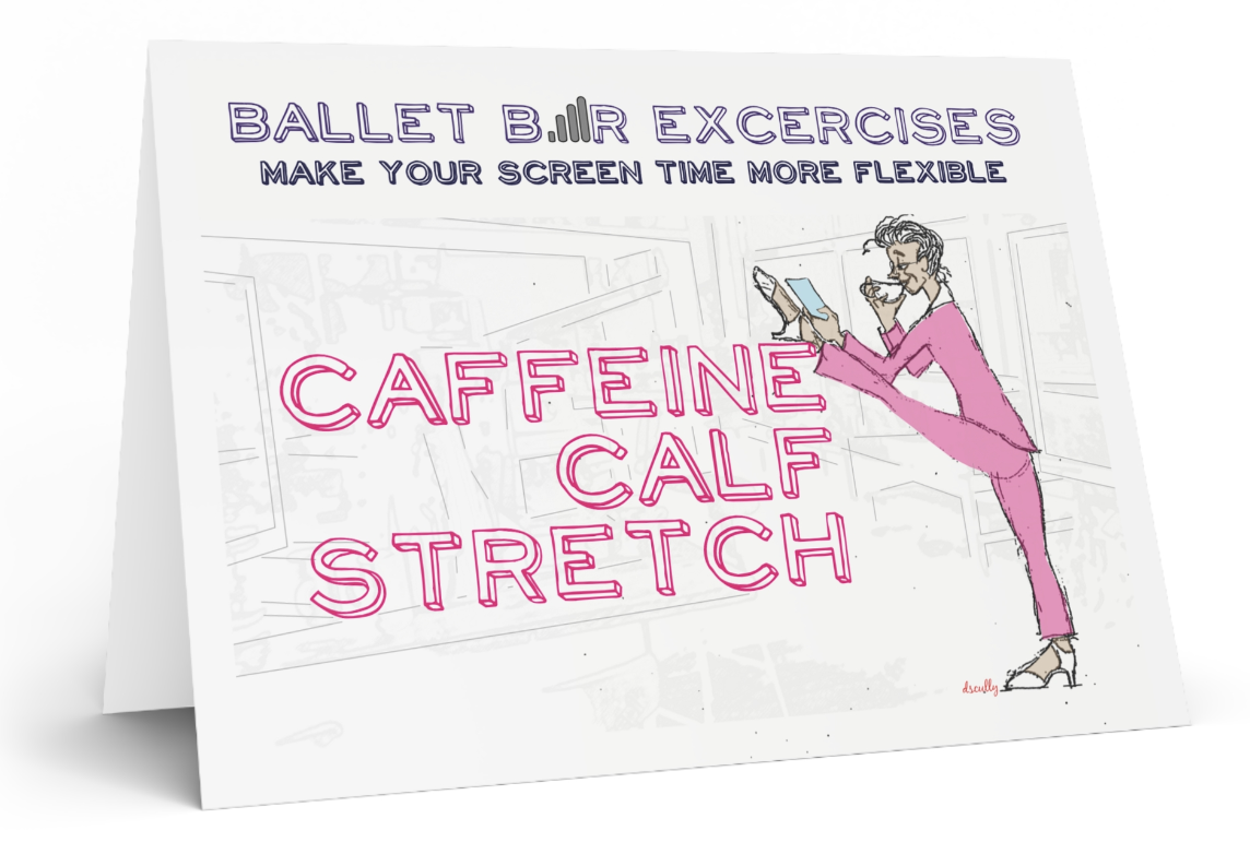 Now you can combine phone time with fitness. Ballet-themed greeting cards that offer tips on how to do a CAFFEINE CALF STRETCH