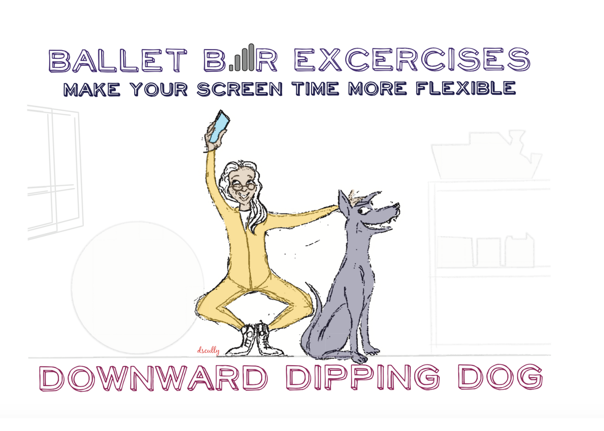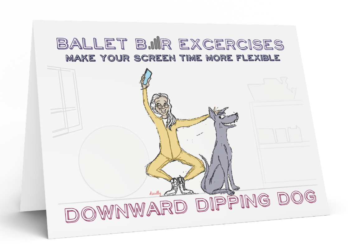 Now you can combine phone usage with fitness. These ballet-themed greeting cards offer tips on how to do a DOWNWARD DIPPING DOG.