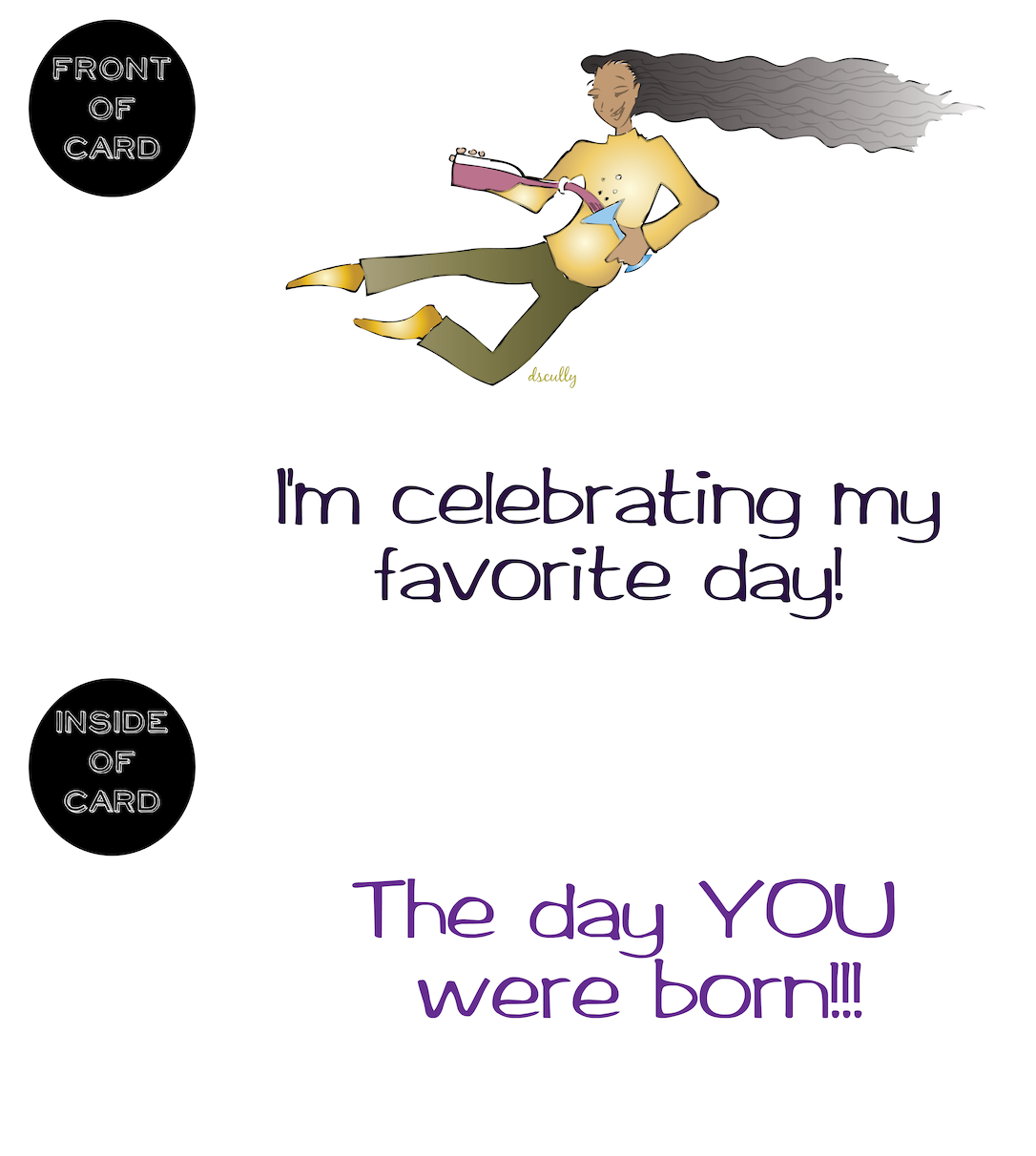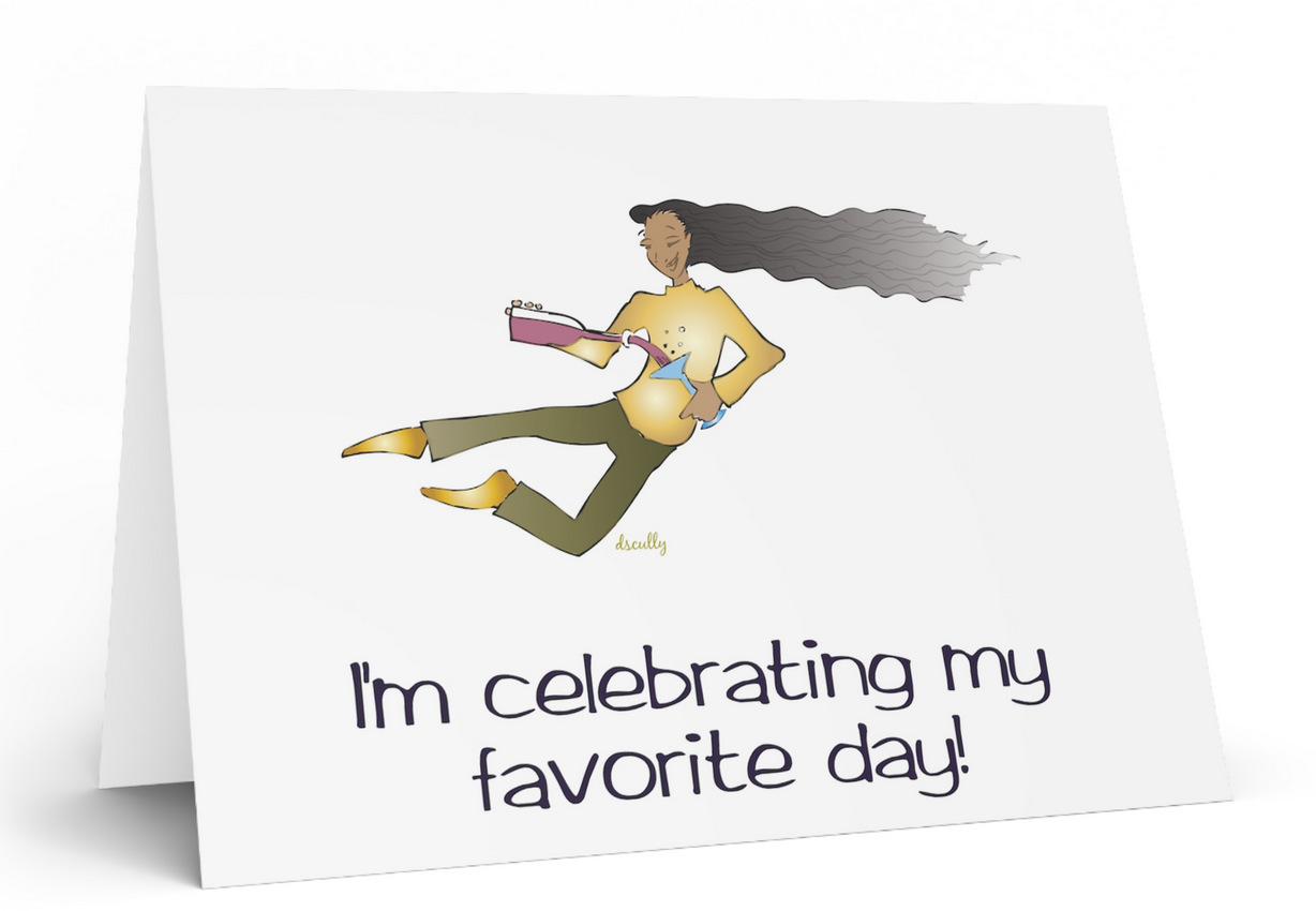 This greeting card celebrates everyone's favorite day: your birthday. Pair with a jump for joy while holding a glass of wine. 90% of my unique and original greeting cards are human-made & comprised of my sketches then digitized. Treat the card-worthy in your life.